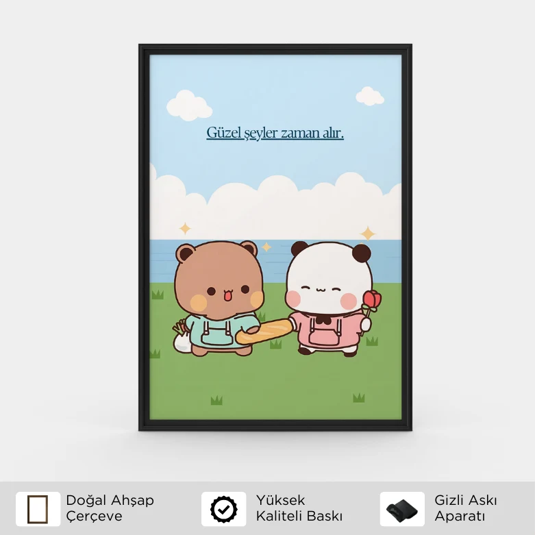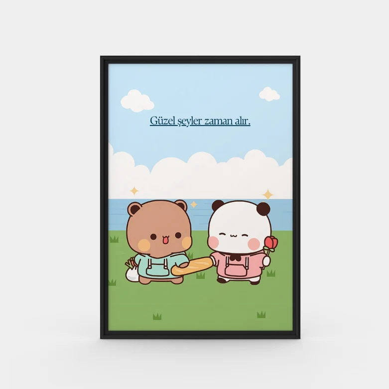 Güzel şeyler sahiden zaman alır mı? Sorunun cevabı evet olacak ki Bubu Dudu tasarımlı posterimiz, pozitif motivasyon odaklı mesajıyla çalışma odanızın duvarını güzelleştirmeye aday.